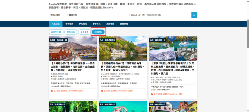 1️⃣熱門 AsiaYo 半自由行跟團直接看~