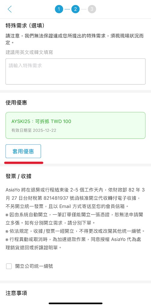 >>> Step 3:輸入 AsiaYo 讀者專屬優惠碼